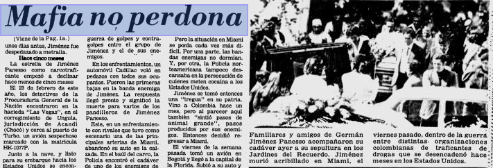 Que el diputado apareciera junto a los hermanos Jiménez Panesso significaba su muerte política. De acuerdo con El Tiempo, Germán Jiménez Panesso fue vendedor de contrabando en Sanandresito en Bogotá y “había sido capturado por el Das en Cali en 1972 con 27 kilos de pasta de coca, pero fue dejado en libertad poco tiempo después”. Luego fue capturado en Estados Unidos con un cargamento de cocaína y quedó en libertad condicional tras pagar una fianza, pero se fugó y regresó a Colombia. Gonzalo, su hermano mayor, capturado en el mismo operativo de enero de 1976, traficaba marihuana desde los Llanos orientales y “utilizaba mujeres muy pobres” para el transporte.