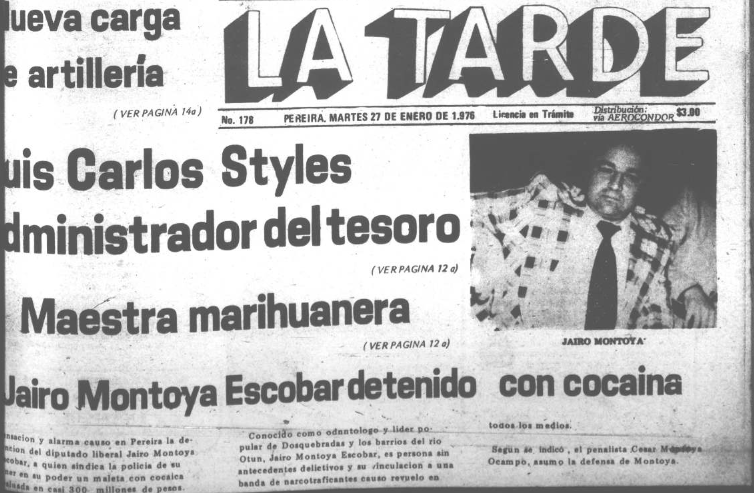 “Diputado liberal gobiernista del Risaralda capturado ayer como narcotraficante” tituló El Diario de Pereira el 27 de enero de 1976. Para esa fecha el presidente de Colombia era el liberal Alfonso López Michelsen, el gobernador de Risaralda era el liberal Gonzalo Vallejo Restrepo y el alcalde de Pereira era el también liberal César Gaviria Trujillo, quien 14 años después sería elegido presidente de Colombia. En ese contexto, El Diario abrió la noticia sobre la captura del diputado, con un párrafo que más parece un editorial: “tienen en estos momentos el santo de espaldas dirigentes de un grupo liberal opuesto al oficialismo, pues están ocupando las primeras páginas de los diarios colombianos, no precisamente para destacar sus virtudes y servicios a la comunidad sino por algo en que se rebasan las barreras legales y se entra por los caminos del delito”.