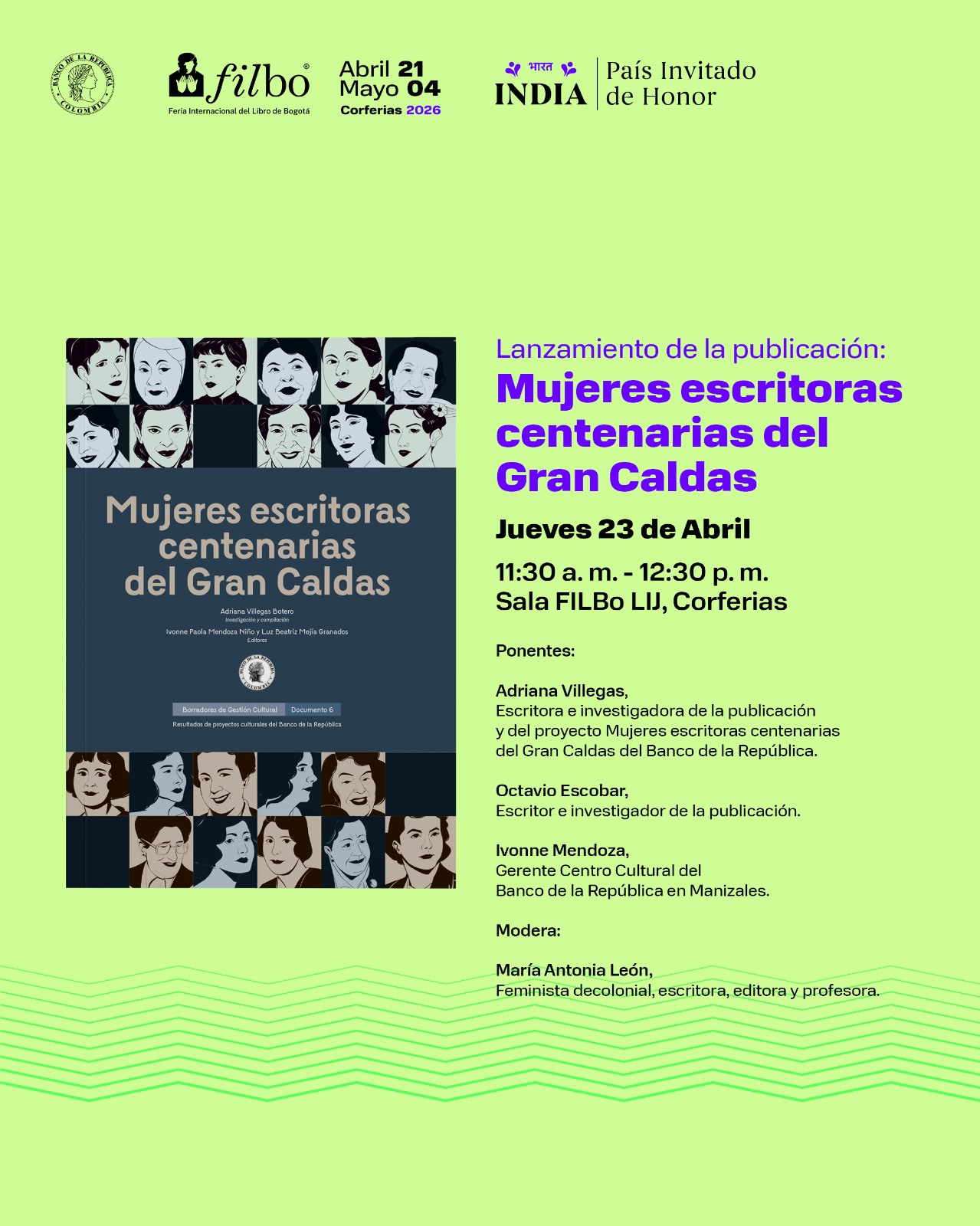 Como parte de las actividades de la Feria Internacional del Libro de Bogotá – Filbo está el lanzamiento del libro Mujeres escritoras centenarias del Gran Caldas, escrito por la periodista manizaleña Adriana Villegas Botero.