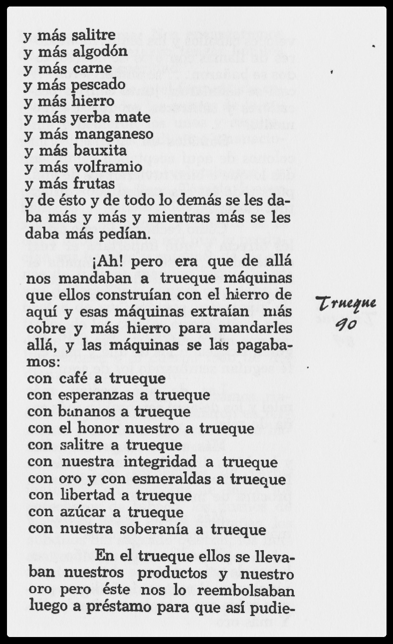 Más cobre exigían aquellos y los hijos hurgaban más y más en las entrañas de la madre Indiana en procura de más cobre». (89)