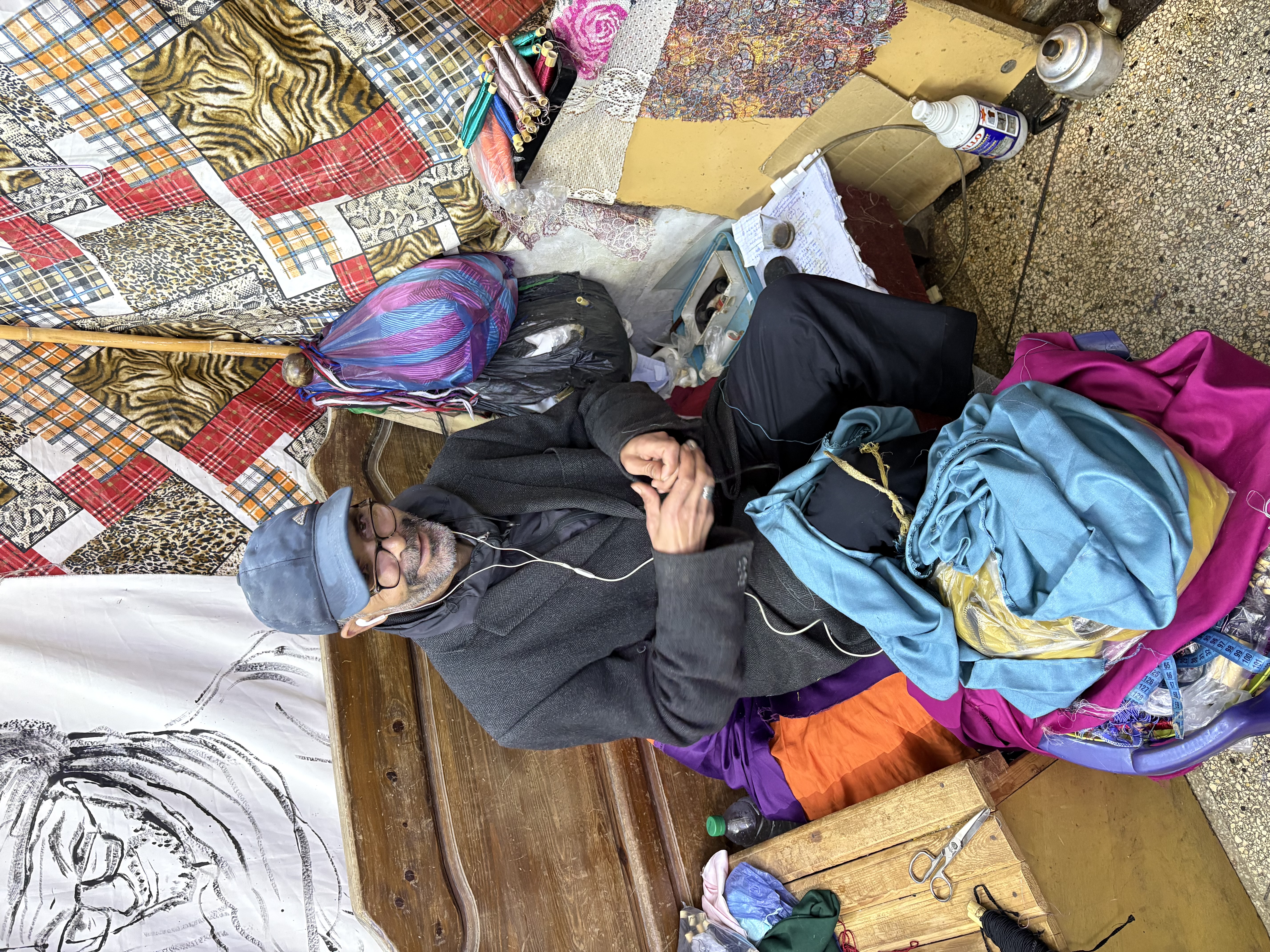 Caminamos no más de cinco pasos y sale de una especie de cueva otro hombre, abre una enorme sombrilla.