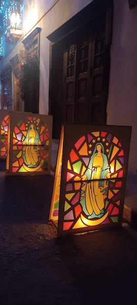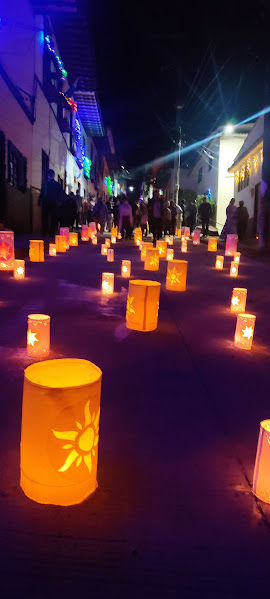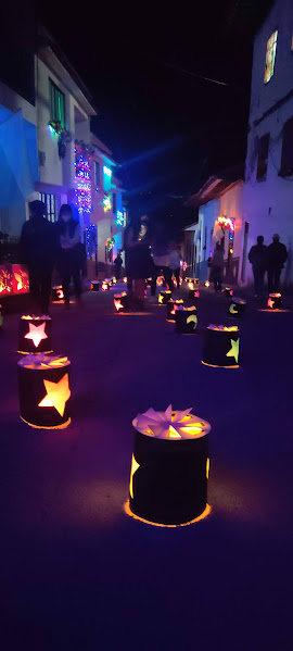 Algunos barrios se especializan en faroles originales y en alumbrados con todas las de la ley: cierran el tráfico para poder poner las velas en la calle, suenan Pastor López, Rodolfo Aicardi y Los Hispanos, y los vecinos reparten natilla, buñuelos, chicharrón y, por supuesto, licor, porque en esta cultura nuestra todo, hasta la fiesta de la Virgen María, sirve de excusa para beber.