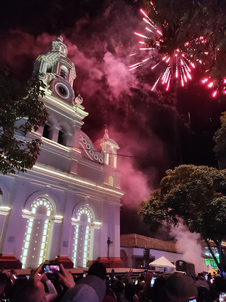 Eso sí: hay que reservar hotel con tiempo. Según Booking, ya no hay alojamiento disponible para esta noche ni en Quimbaya ni en Salamina. La aplicación me sugirió una alternativa cercana a Salamina y al revisarla descubrí que era en Supía. El algoritmo no entiende las complejidades de las carreteras caldenses. Por fortuna, encontré hospedaje en el antiguo Colegio de la Presentación, donde estudió mi mamá y en donde le rinden tributo a la madre Berenice, que hoy es beata y pronto será la segunda santa de Colombia, después de la madre Laura, según confían con fe en Salamina. El de la Presentación es un convento grande y bonito, frente al hospital, que las monjas acondicionaron hace algunos años como casa de retiros y, ante la falta de camas para recibir turistas en el municipio, es una excelente alternativa para pasar la noche. Quedé varios días en lista de espera y esta semana me llamó una religiosa a confirmar que sí había cupo para nosotros. Cuando les dije que necesitaba una habitación para mi esposo y para mí, la monja, muy prudente, me advirtió: “le recuerdo que esta es una casa de oración”. Viviremos la noche del fuego por su lado más sacro.