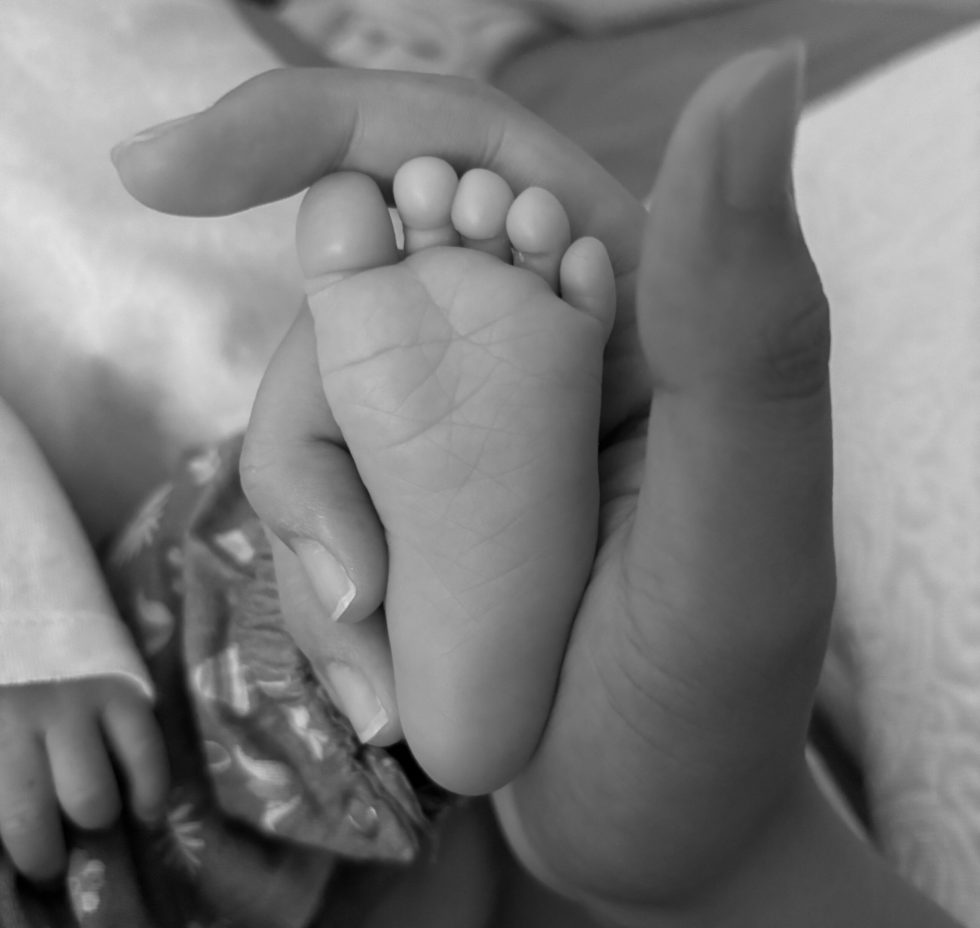 Estamos en la sala de puerperio del hospital, en la cama 307. Cuatro camas, divididas por cortinas azules, conforman este espacio. La recién nacida viste un saco beige con pececitos verdes, un pantalón remangado –del mismo color– y un gorro gris. Tiene los ojos abiertos, pero no mira. Un vello fino cubre su piel rosada. El cabello aún está húmedo por el líquido amniótico; los restos de una capa blanca, grasosa y espesa y la sangre del canal de parto.